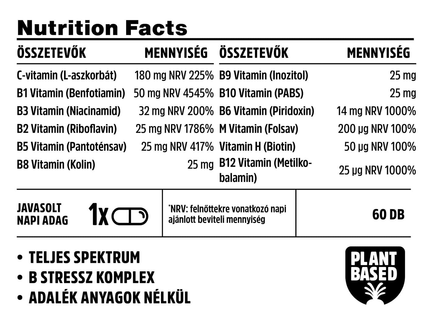 B Stressz Komplex, teljes spektrumú B-vitamin Komplex adalék anyagok nélkül!