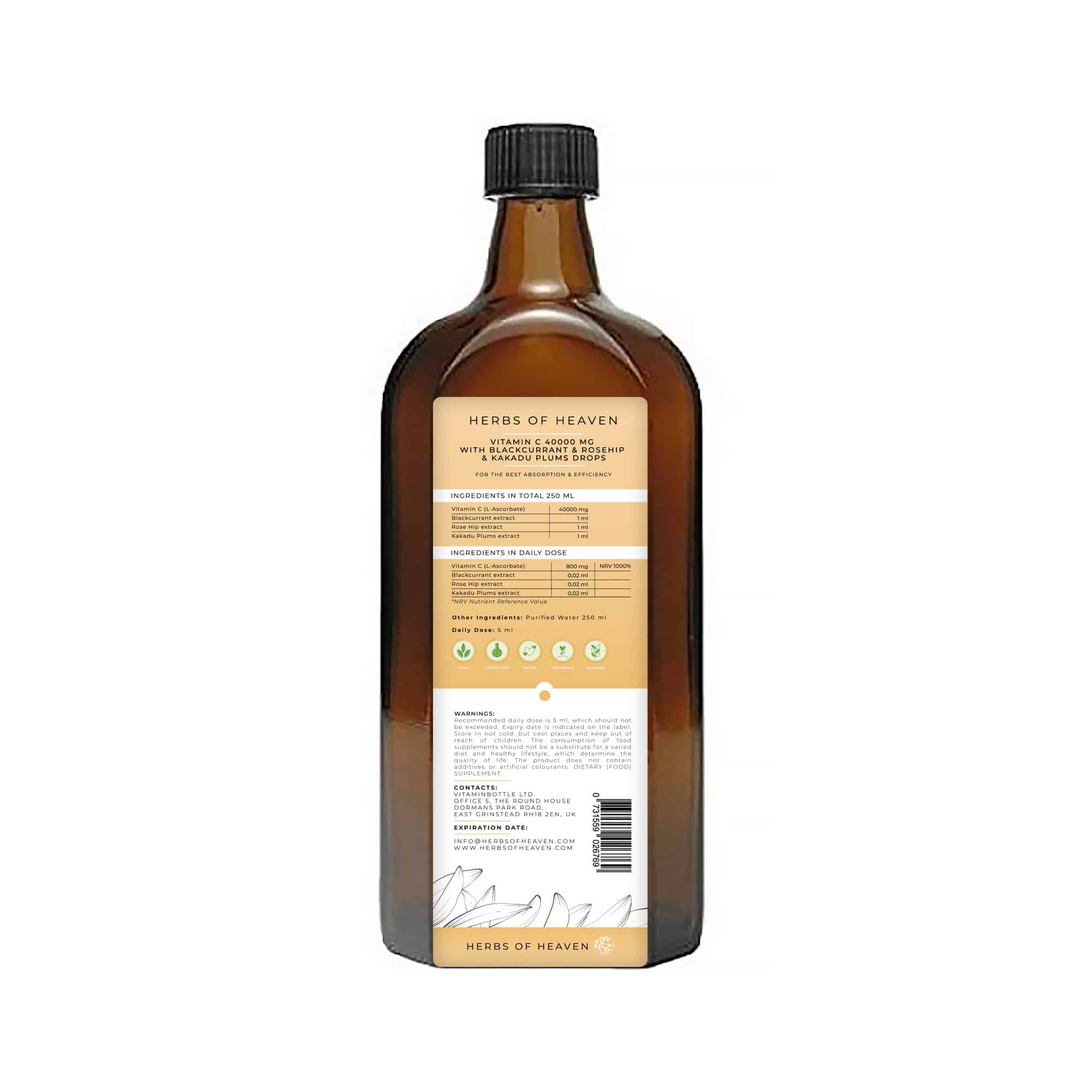 Termékünk csepp formájában 40 000 mg C-vitamin-t tartalmaz, a természetes C-vitaminhoz legközelebbi formátumban, gyümölcs kivonatokkal, bioflavonoidokkal kiegészítve. A C-vitamin, rendkívül erős antioxidáns, védi a sejteket, szervezetet az oxidatív stressz és felszabaduló sejtkárosító szabadgyökök hatásaitól. Erősíti a vérerek falát, szilárdítja a kötőszövetet, fokozza a szervezet védekezőképességét, ellenállását a fertőzésekkel, betegségekkel szemben, valamint megelőzésként segíti a csontok egészségét, szilárdságát és a csontképződést.