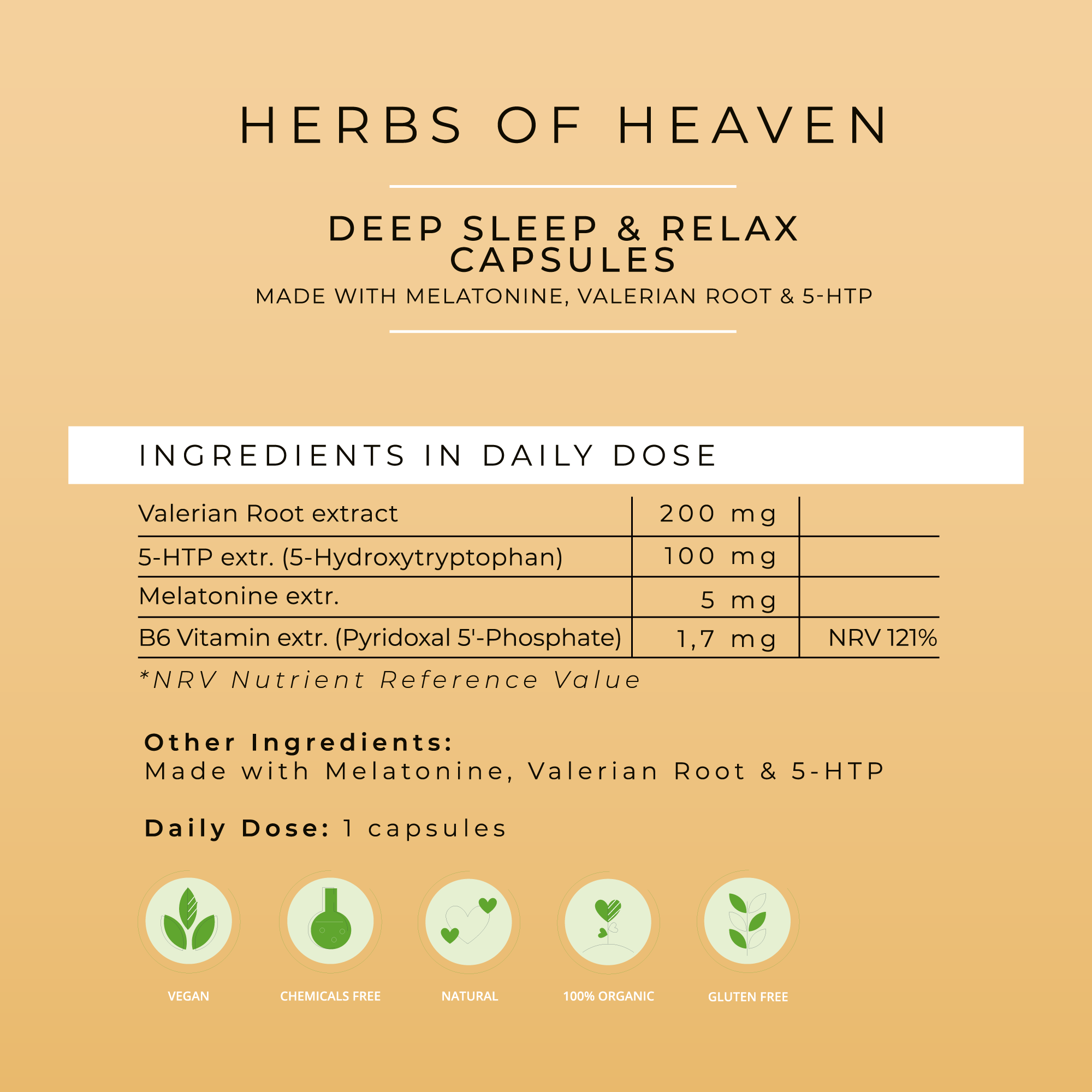 Deep Sleep & Relax kapszula Melatonin, Valeriana gyökér, 5-HTP kivonatokkal 60 db