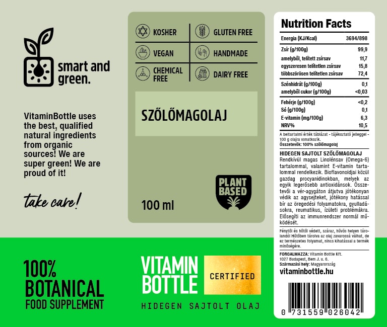 Szőlőmagolaj hidegen sajtolt magolaj 100 ml